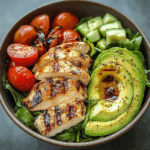 A Grilled Chicken & Avocado Power Salad is a delicious and nutritious choice for any meal. This vibrant bowl combines tender grilled chicken with creamy avocado, tangy feta cheese, and fresh veggies. Perfect for lunch, dinner, or even meal prep, this salad stands out with its blend of textures and flavors while being easy to prepare.