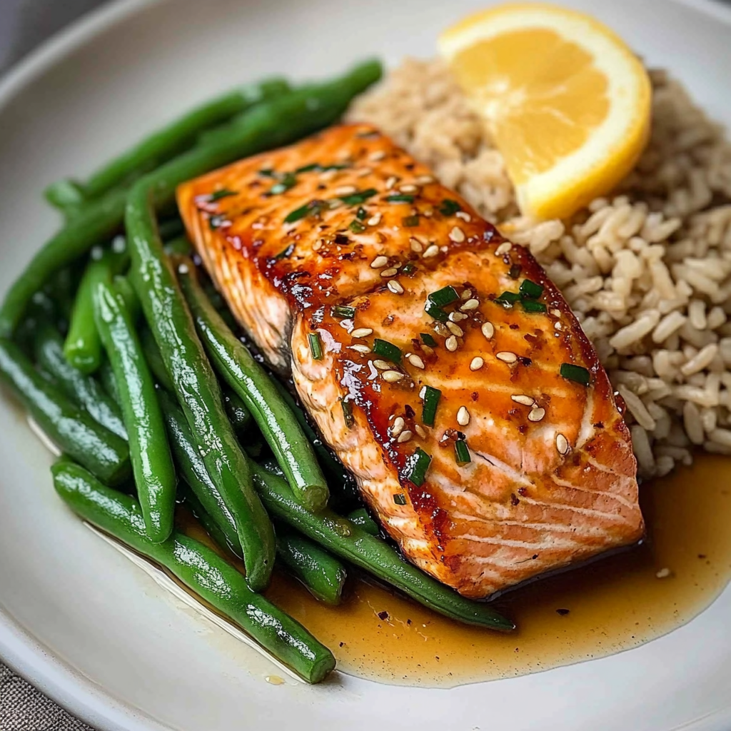 4. Serve the glazed salmon alongside brown rice and sautéed green beans. Drizzle any remaining glaze over the salmon if desired.