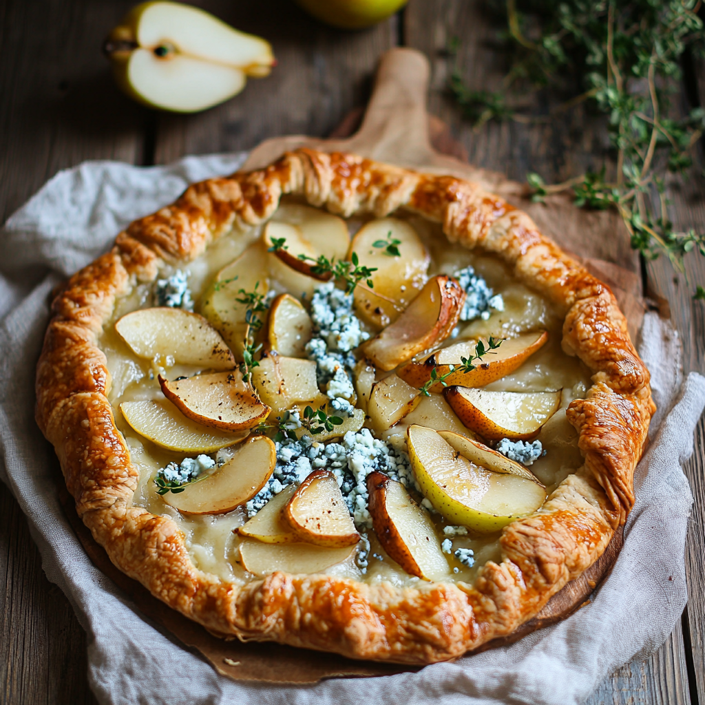 The Pear and Blue Cheese Galette is an elegant dish that’s perfect as an appetizer or light dinner. Its combination of sweet pears, creamy blue cheese, and crunchy walnuts offers delightful flavors that are sure to impress your guests. Feel free to customize your galette by adding different nuts or using various types of cheese to suit your taste!